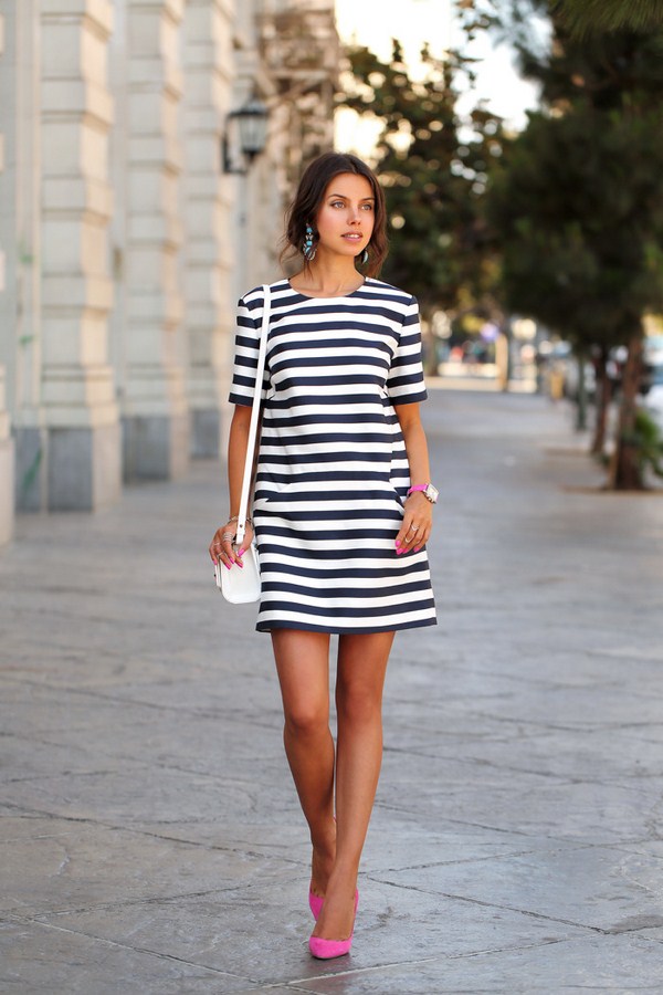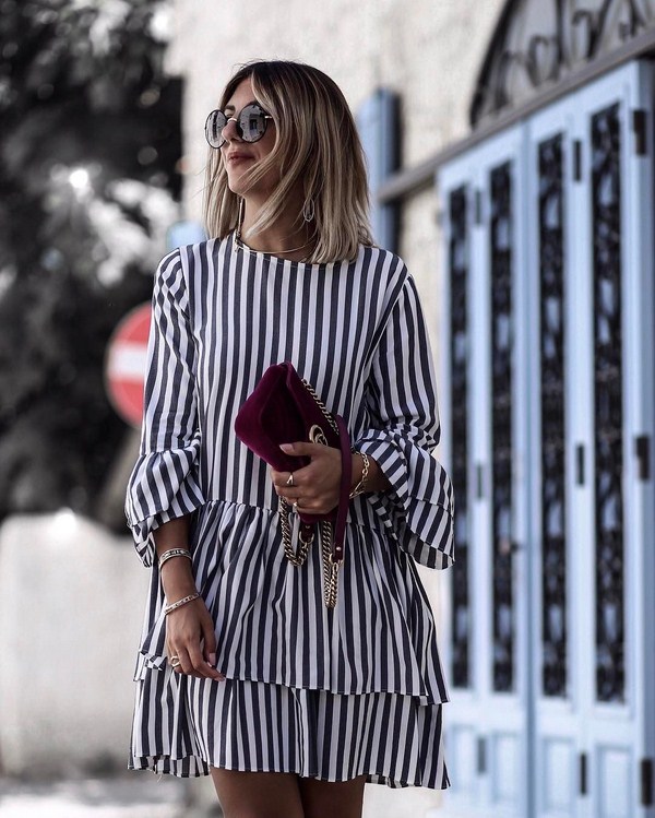 Longueur de la robe rayée Cela peut aller de mini-robes courtes à la mode midi ou de longues robes romantiques à rayures, ce qui permettra à chaque jeune femme de choisir une tenue à rayures à sa guise.