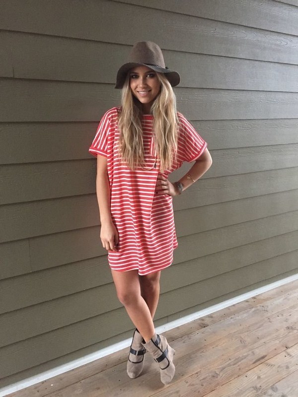 Les robes à la mode à rayures sont parfaites avec des baskets, des bottes et des ballerines. Sandales à la mode ou des sandales à basse vitesse, des compensés, la plate-forme sont également belles avec des robes à rayures.