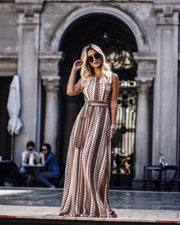 Les robes de sol rayées sont toujours magnifiques et spectaculaires. Les robes longues à rayures sont idéales pour les images de plage, les promenades en ville, si vous regardez les silhouettes coupées gratuitement.