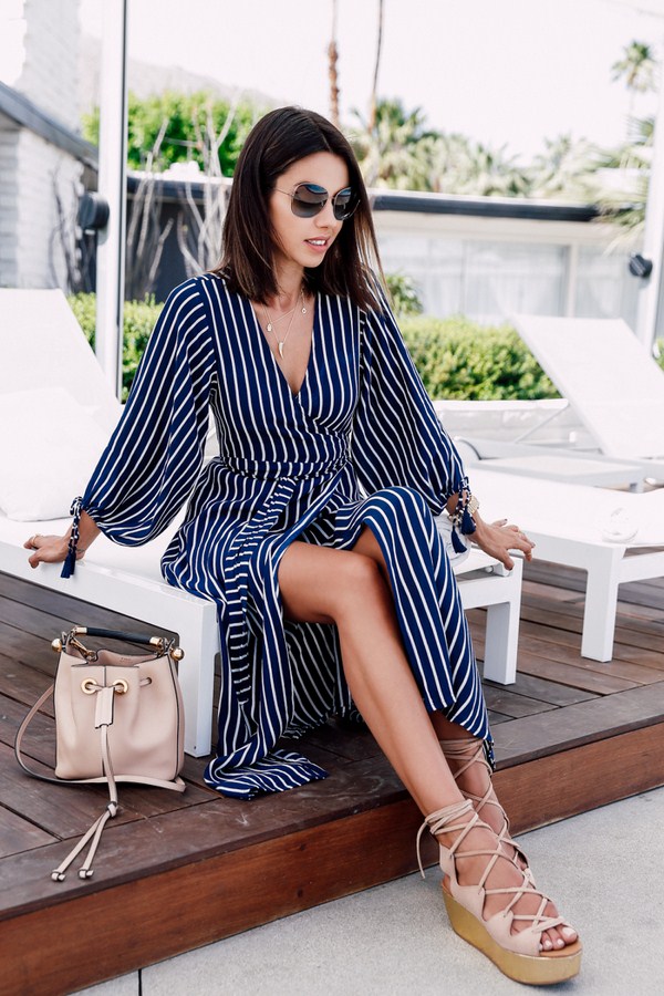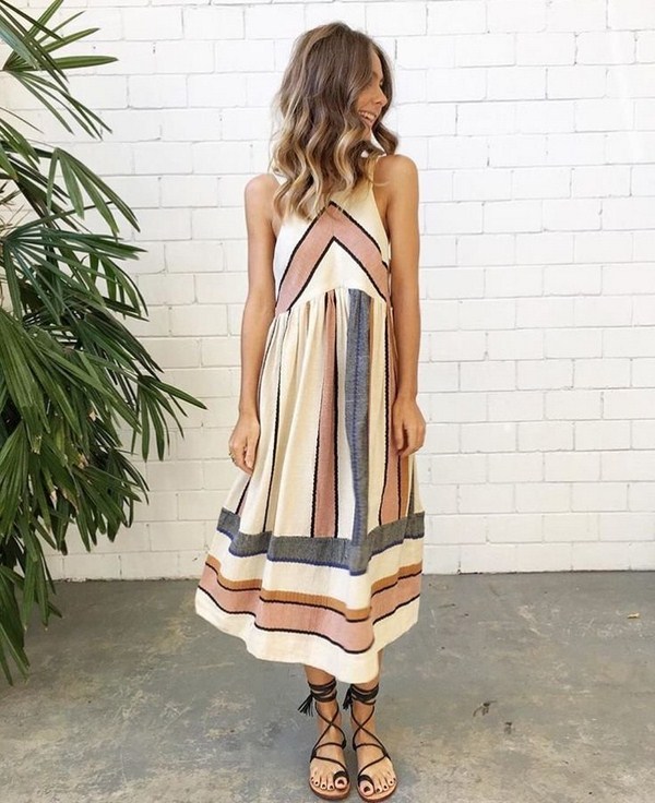 La différence d'une robe de plage à rayures sera la légèreté du tissu dans lequel la tenue d'été à rayures est faite. Cela peut être des robes courtes à rayures mini, midi et maxi à rayures.