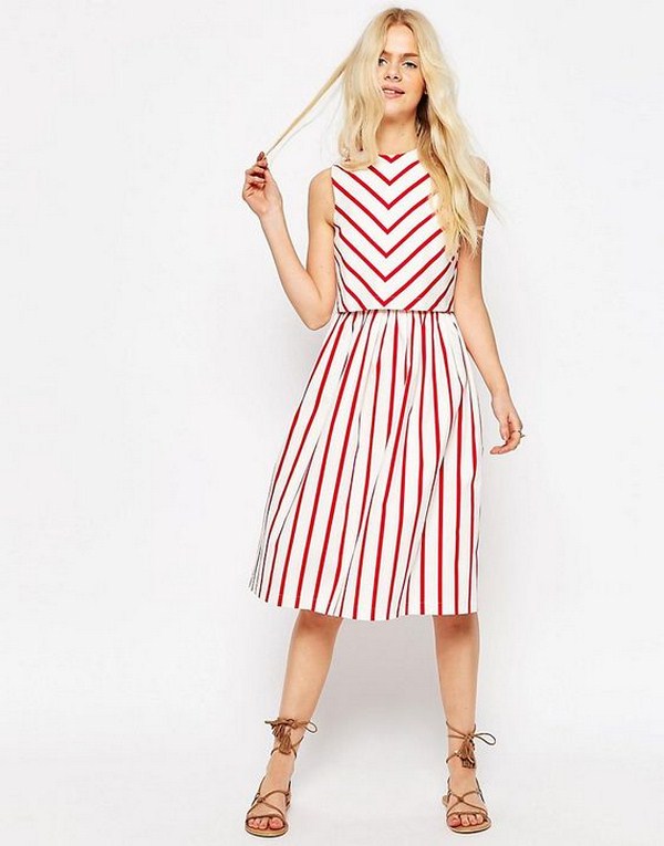 Les filles jeunes et actives peuvent se permettre une tenue mini rayée pour l'été. Les représentants sont un peu plus âgés - robes d'été avec des rayures jusqu'au genou ou midi à la mode.