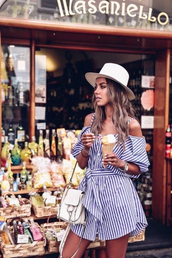 Vous pouvez recréer des décors estivaux inspirants avec des robes à rayures style rue, des ensembles de plage et des looks romantiques en consultant des exemples de robes à rayures illustrant la photo.