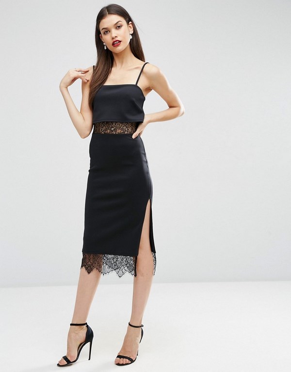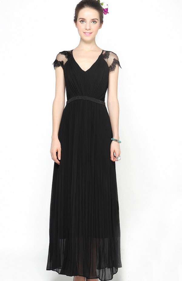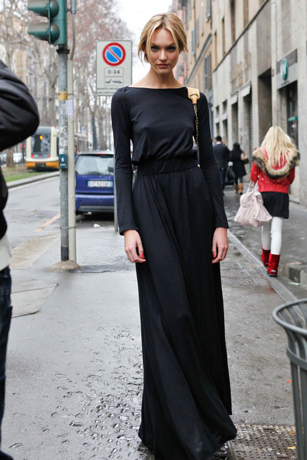 Juga, gaun hitam panjang paling sering dilengkapi dengan garis leher atau celah, menjadikan imej itu lebih menarik dan asli.