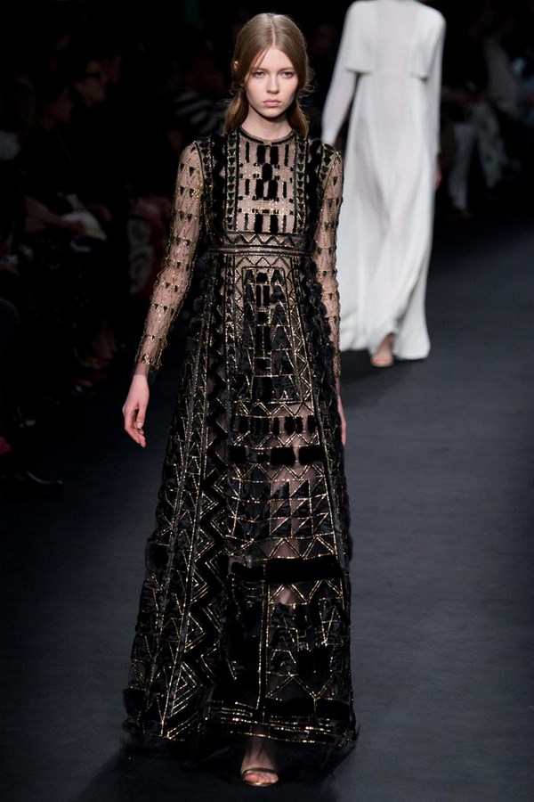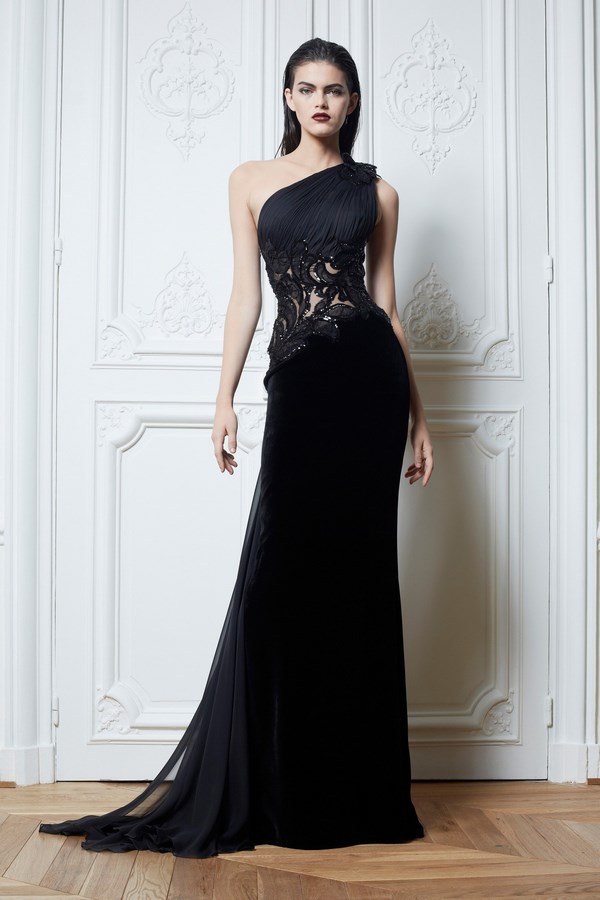 Gaun hitam yang elegan di lantai dibentangkan dalam koleksi pereka terkenal seperti Zuhair Murad, Dior, Elie Saab, Jean Paul Gaultier dan banyak lagi yang pakaiannya memukau dengan kecantikan dan keanggunan.