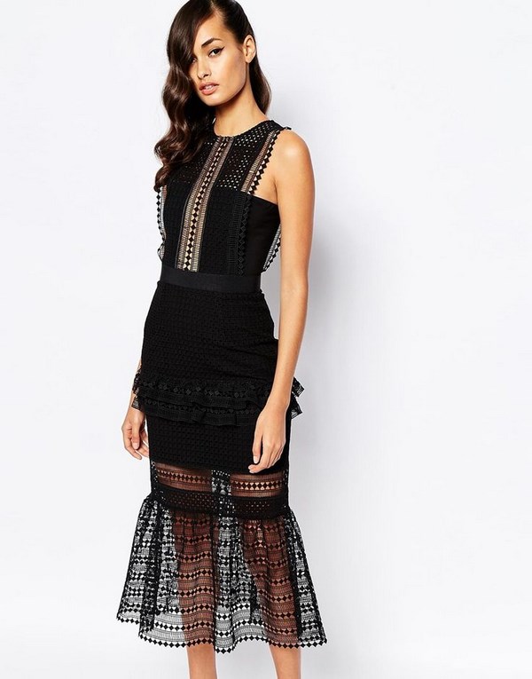 Gaun hitam bergaya mempunyai pelbagai pilihan gaya - ini adalah pakaian yang bustier, pakaian hitam dengan punggung terbuka atau gaun hitam dengan garis leher terbuka, gaun malam mewah dan elegan di lantai, gaun hitam dengan peplum dan renda.