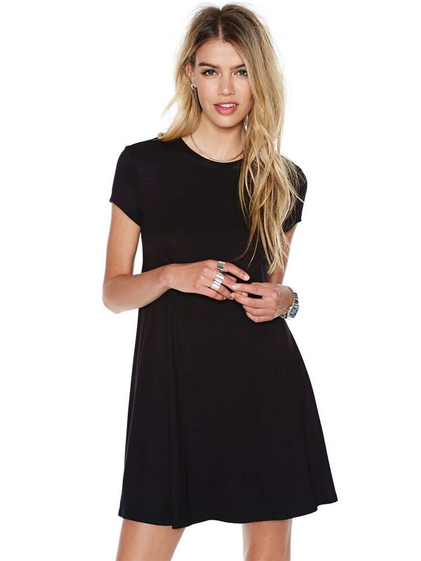 Pakaian longgar dan ringan, seperti pakaian baju berwarna hitam, sesuai untuk setiap hari dan untuk acara tidak rasmi, membolehkan anda membuat imej yang bergaya dan ringkas.