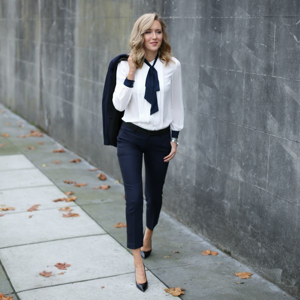 Stylists menawarkan wanita untuk melengkapkan seluar fesyen dengan bot klasik, serta kasut oxford bergaya atau kasut bertumit rendah lain, serta mengambil beg tangan yang indah yang akan melengkapkan pakaian perniagaan yang bergaya.