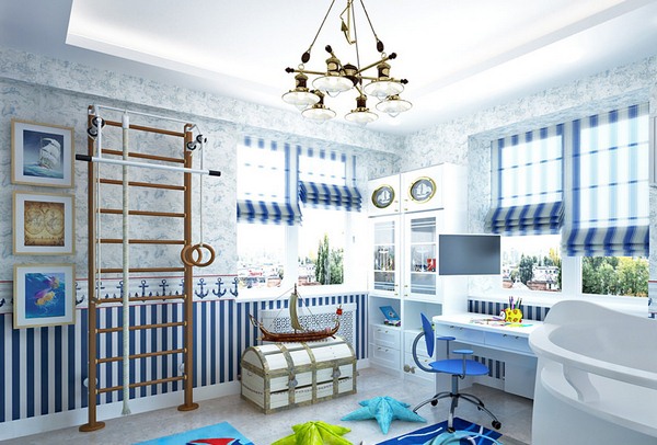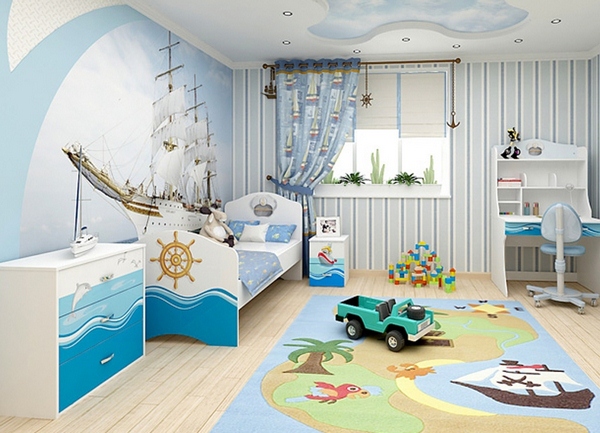Reka bentuk asal bilik kanak-kanak untuk budak lelaki di bawah umur 6 tahun