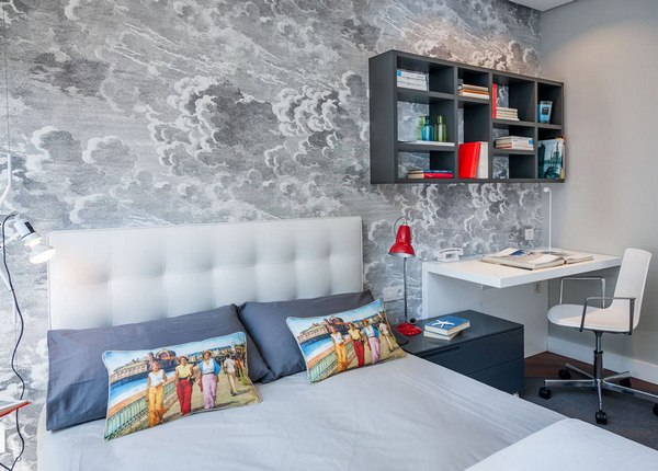 Reka bentuk bilik untuk seorang remaja selalu lebih tenang dan bergaya, di mana terdapat hanya beberapa aksen yang terang, dan paling sering, ia berkaitan dengan hobi dan hobi remaja.