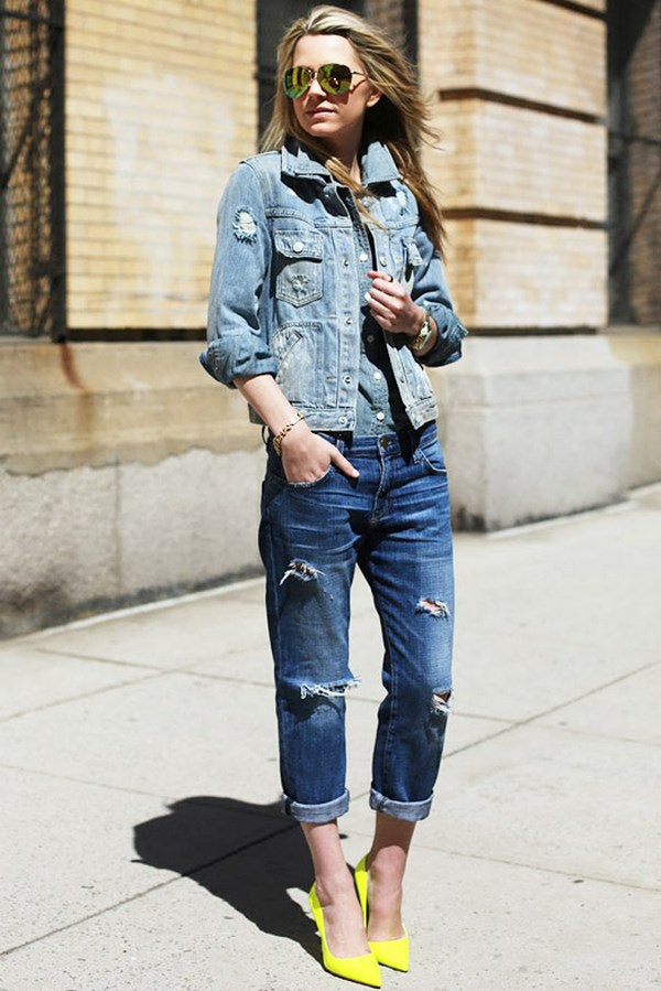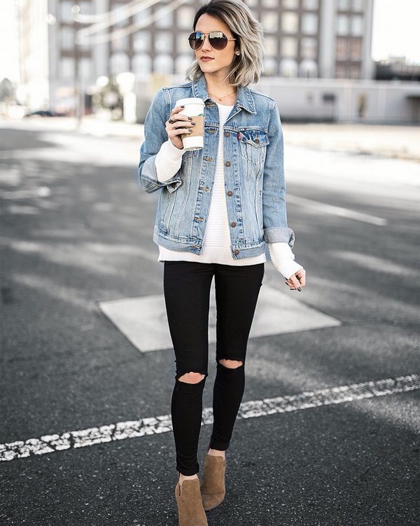 Oleh kerana jaket denim bergaya sangat praktikal dan serba boleh, anda boleh melengkapkan penampilan yang paling pelbagai dalam gaya pakaian dengan jaket denim.