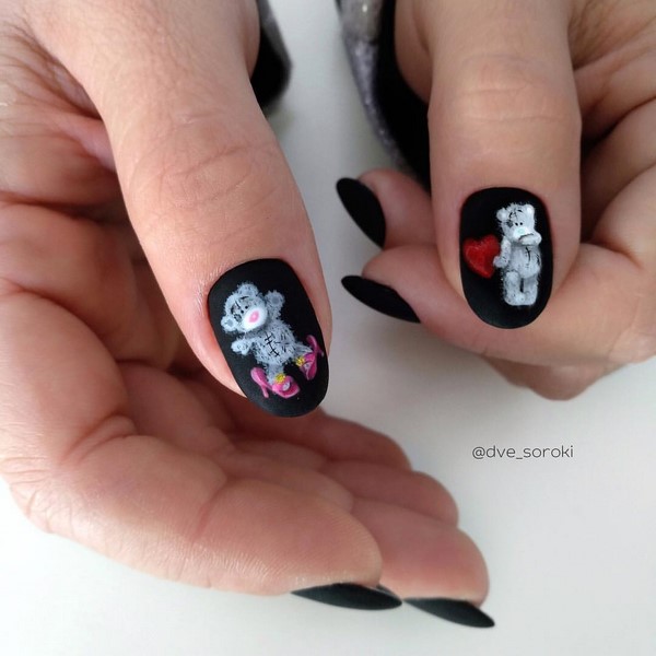 Pilihan yang sangat baik untuk menghias kuku kuku gel yang bergaya dengan beruang Teddy, wajah dan potret di mata melihat gaya reka bentuk kuku, serta watak kartun dan haiwan comel.