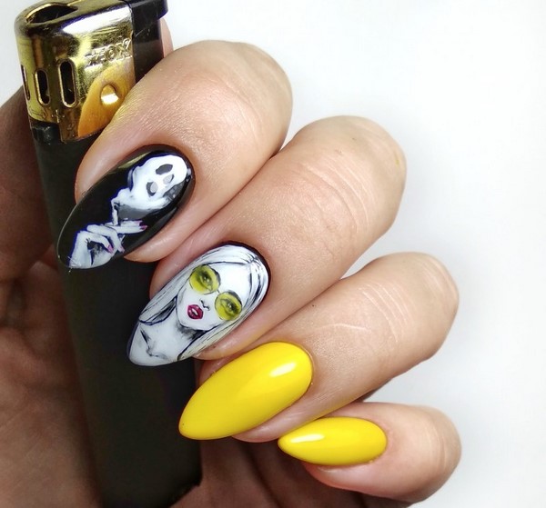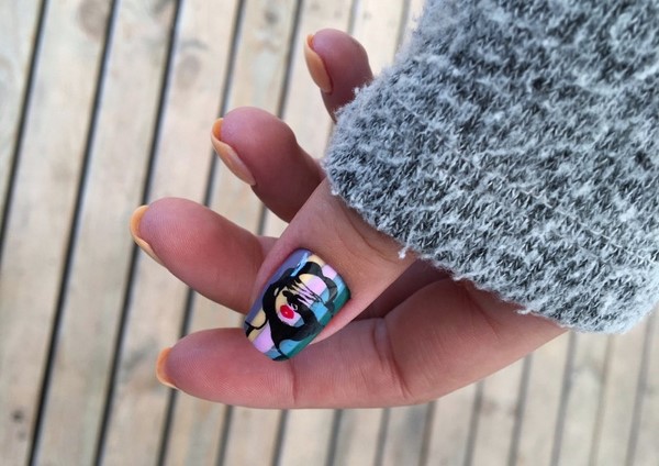 Selain haiwanisme pada kuku dengan gel menggilap, kuku bergaya dengan inskripsi dan pelbagai kata dan huruf akan menjadi trendi.