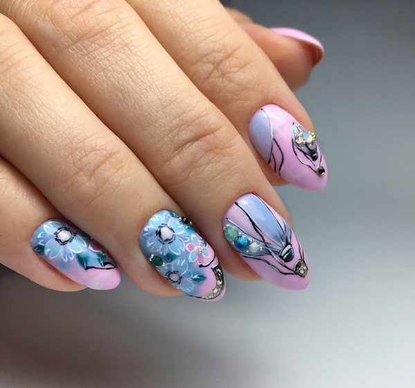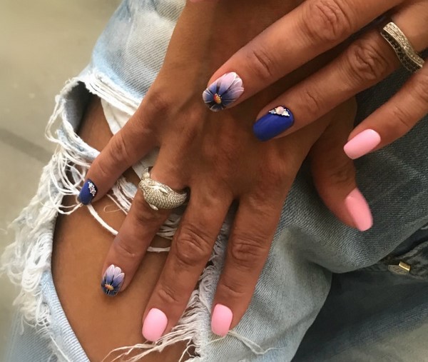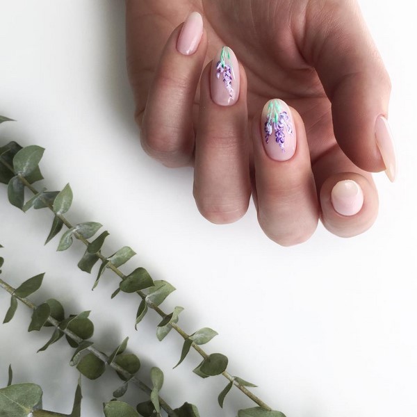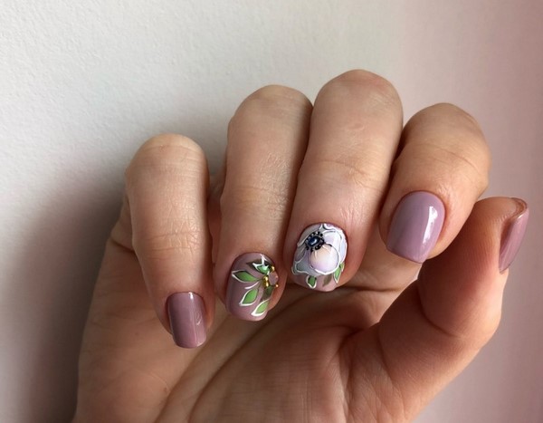 Corak bunga pada kuku dengan gel menggilap