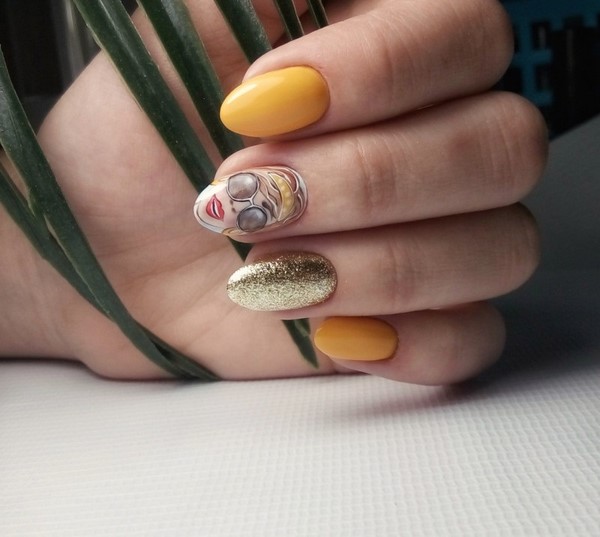 Perlu menyebutkan variasi penggilap gel manicure yang sejuk dan menarik dengan imej tematik dan dicat 14 Februari - ini terutamanya hati, pada Tahun baru - menggilap gel manicure dengan rusa, pokok Krismas, snowmen, manikur untuk Halloween, seni kuku perkahwinan gel menggilap akan membantu untuk mencipta kecantikan yang luar biasa reka bentuk atas marigolds gel menggilap untuk citarasa anda.