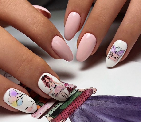 Bagi wanita muda yang bosan dengan reka bentuk dengan penyelesaian reka bentuk kuku yang biasa, kami mencadangkan memperhatikan reka bentuk kombinasi kuku bergaya dengan gel menggilap, menggilap gel manicure dengan imej lucu pada musim 2025-2026.