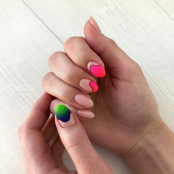 Mewujudkan kecerunan yang indah pada kuku cukup mudah, jika anda sedikit biasa, tetapi hasilnya pasti akan mengejutkan anda. Selain daripada biasa merentangkan warna-warna pepenjuru dan menegak, kebaikan memperlihatkan barang-barang baru di atas gel gel manicure ombre dalam bentuk jalur - kecerunan linear di bahagian berasingan marigold, serta reka bentuk gel gelang kecerunan dengan kamifubuki, corak dan rhinestones untuk hiasan khusus khusus kuku.