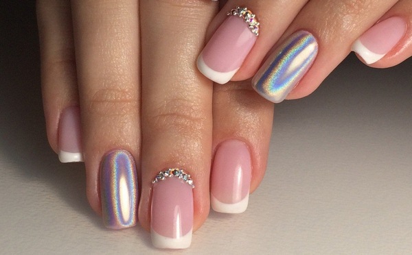 Tidak mustahil untuk membayangkan manicure Perancis bergaya 2025-2026 tanpa hiasan dan perhiasan yang mengubah manikur mana-mana. Untuk ini, tuan gunakan menggosok, kamifubuki, setem, jalur dan wayar, manik dan rhinestones.