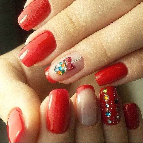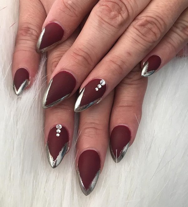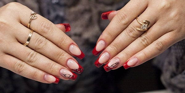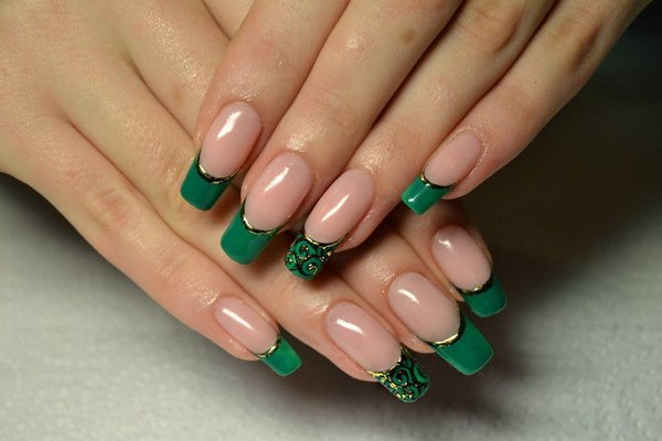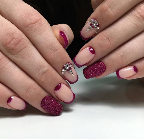 Untuk pakaian khusus dan melengkapkan penampilan yang dimaksudkan, anda boleh memilih manikur Perancis tradisional yang bergaya untuk menyesuaikan pakaian - merah, biru, zamrud, turquoise, fuchsia, burgundy, marsala, wain, coklat coklat.