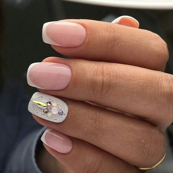Untuk memberikan keaslian dan membuat penekanan dalam pelaksanaan klasik Perancis, cukup untuk menghiasi salah satu jari, contohnya, yang tidak bernama, dengan pelekat manicure, beberapa manik atau rhinestones, jalur, kawat dan hiasan lain yang sesuai dengan keinginan anda.