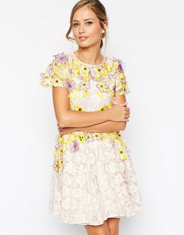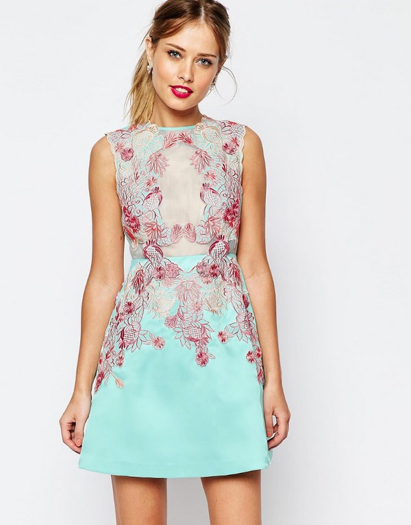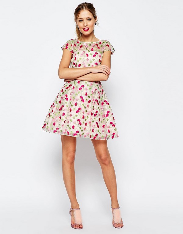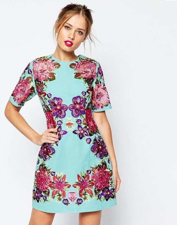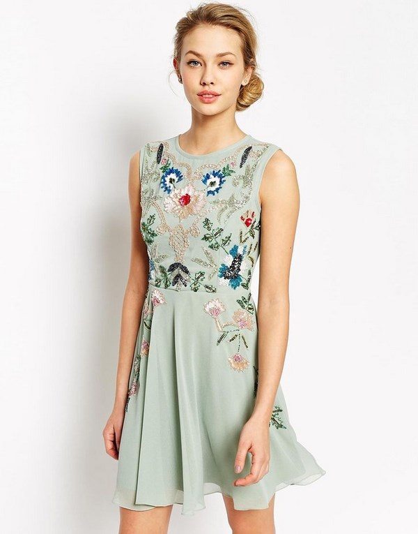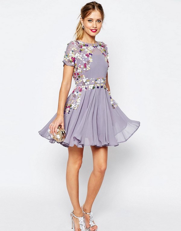 Pakaian pendek yang paling halus yang ditunjukkan oleh pereka dihiasi dengan sulaman, tirai, rhinestones dan appliqués bunga. Juga, model pakaian pendek boleh ditambah dengan garis leher, luka dan sisipan kain asal.