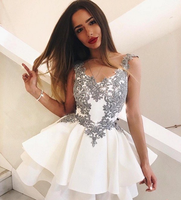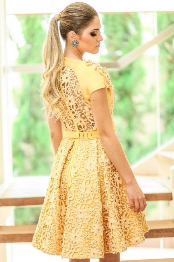 Model menarik pakaian pendek yang ditunjukkan musim ini adalah, pertama sekali, pakaian pendek cantik dengan punggung terbuka. Pakaian pendek seperti ini dengan belakang terbuka boleh sama ada dengan belakang terbuka atau dengan renda yang menutup belakang, yang kelihatan sangat lembut dan comel.