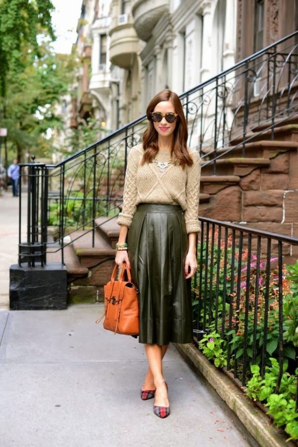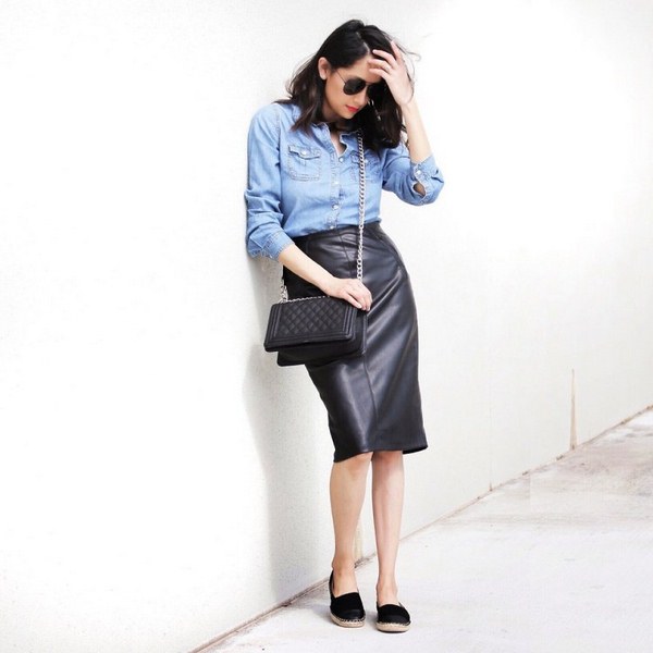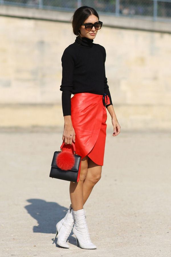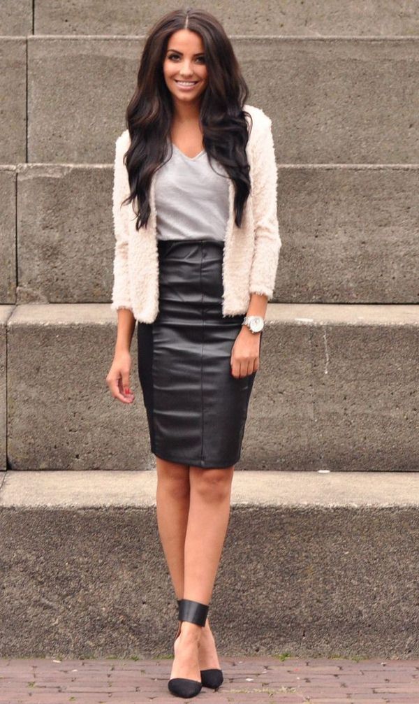 Di musim sejuk, jangan takut memakai skirt kulit dengan sweater kasar, baju pengantin, jumper, yang kelihatan sangat bergaya dan elegan. Anda boleh melengkapkan skirt kulit dengan kemeja denim dan kain lain yang kelihatan hebat dengan skirt kulit yang bergaya.