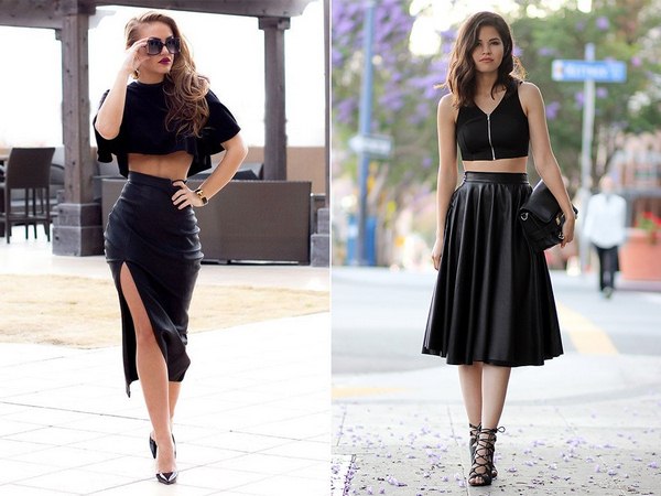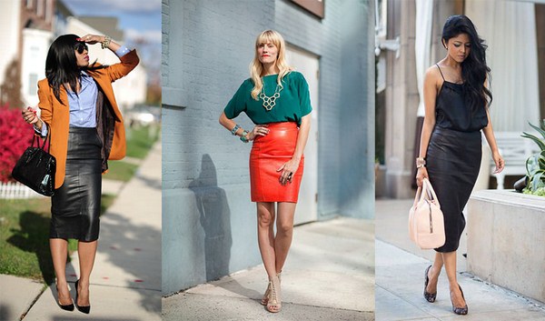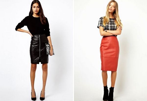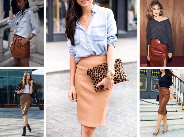 Rok kulit bergaya agak serba boleh dan mudah digabungkan dengan banyak perkara dalam almari pakaian anda dalam gaya yang berbeza - perniagaan dan kasual, dan kasual pintar. Busur cantik boleh dibuat dengan melengkapkan skirt kulit dengan kemeja, kemeja atau baju.