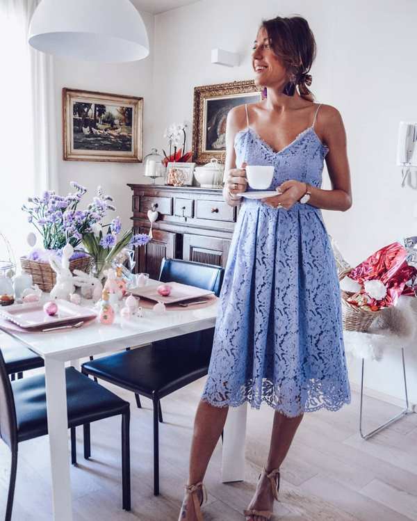 Ia adalah perlu untuk memilih pakaian dari renda mengikut acara atau tempat perayaan - gaun renda pendek sesuai untuk cuti musim panas dan suasana santai, tetapi untuk petang di luar anda boleh memilih pakaian renda mewah dengan membuka belakang di atas lantai.