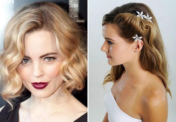 Terutama cantik adalah gaya rambut untuk tamat pengajian dengan helai separuh terbuka, apabila bahagian rambut dikumpulkan dengan indah dan dijamin ke mahkota dengan klip rambut. Adalah penting untuk membuat jumlah tambahan (dengan bantuan chignon atau "bagel") supaya gaya rambut mempunyai rupa yang cantik.