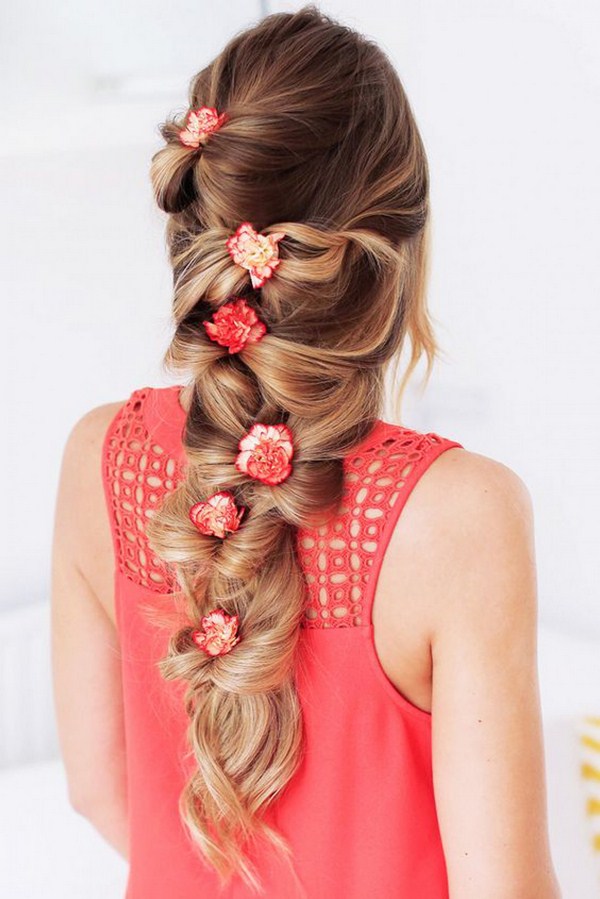 Pelengkap, jika dikehendaki, gaya rambut pengijazahan dengan bungkusan braids, anda boleh menggunakan beberapa braids sekaligus, dengan lancar mengubah gaya rambut utama, menghias gaya rambut dengan unsur hiasan, sebagai contoh, bunga yang popular untuk rambut, yang kelihatan lembut dan romantis.