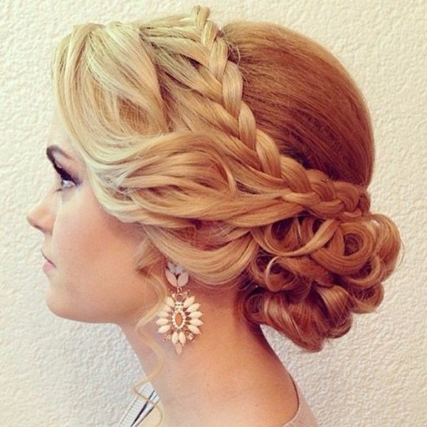 Gaya rambut yang sangat cantik untuk tamat pengajian dengan teknik menenun dan gabungan kelihatan pada helai di mana pewarna rambut yang bergaya pada musim ini telah dilakukan.