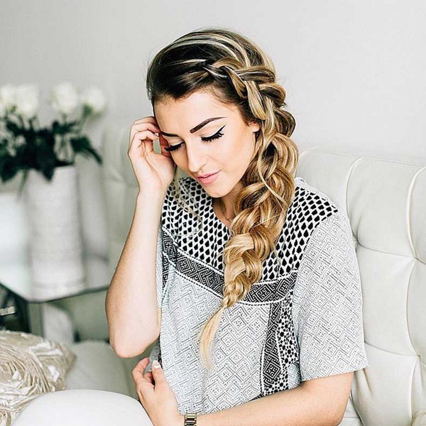 Idea yang baik untuk gaya rambut braids braids pada rambutnya akan menjadi air terjun. Gaya rambut yang paling elegan dari air terjun kelihatan pada rambut bergelombang dan digabungkan dengan keriting.