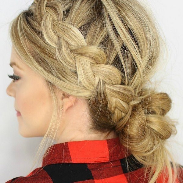 Apabila melakukan gaya rambut ini dengan gaya braiding, anda boleh menggunakan teknik corak yang berbeza, yang akan membolehkan anda membuat gaya rambut dengan gaya yang berbeza: kancing Yunani, kancing Perancis, tali pinggang, kancing dengan kancing, air terjun, ekor ikan, kancing dengan ekor dan bun.