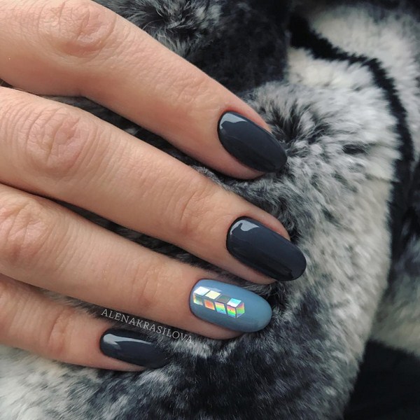 Reka bentuk kuku kaca patah bergaya 2025-2026 sangat bagus dengan "pecahan pecahan kaca" pada satu jari, pada beberapa atau sekaligus. Dalam kes ini, anda boleh membuat reka bentuk kuku monokromatik "kaca pecah" atau menggunakan beberapa nada varnis.