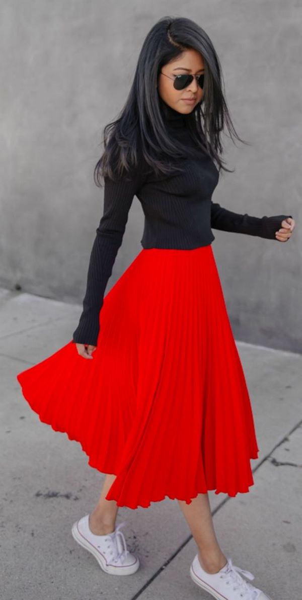 Imej bergaya musim luruh bergaya dengan skirt yang indah dibuat pada panjang midi tweed dan tanda cetak cetak, serta skirt midi dirajut dengan motif abstrak, akan membolehkan anda kelihatan hebat, tanpa perlu risau tentang pembekuan. Rok mini yang diperbuat daripada kulit atau denim akan kelihatan sangat menarik, membolehkan anda memberikan daya tarikan set musim sejuk. Hiasan skirt fesyen jatuh musim sejuk busur dan patung yang boleh menjadi, skirt dengan luka agak biasa.