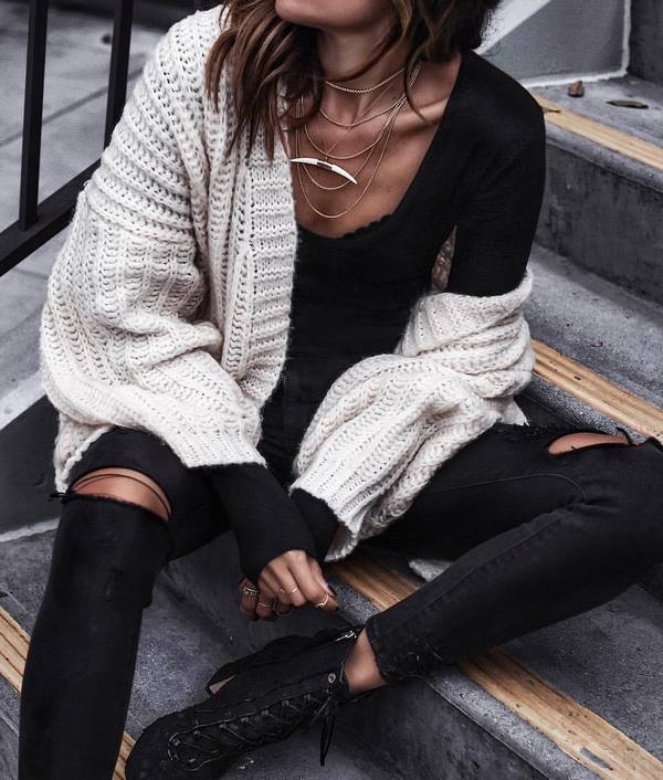 Satu kegemaran wanita yang tak tergantikan adalah kardigan rajutan yang bergaya, yang ditawarkan dalam gaya yang berbeza dan dipotong untuk musim baru. Jadi, kardigan besar akan sangat berkesan, dalam gaya pendek dan panjang.