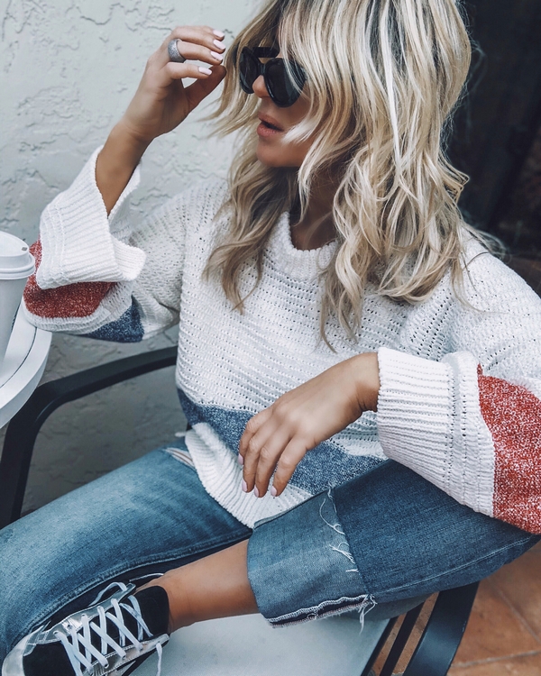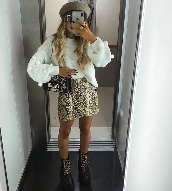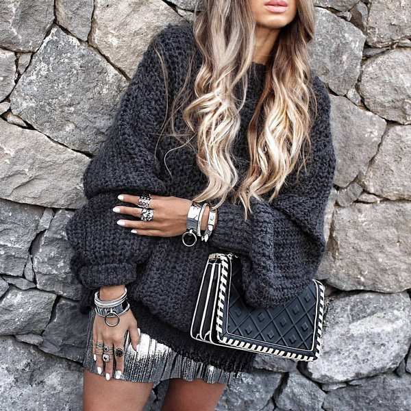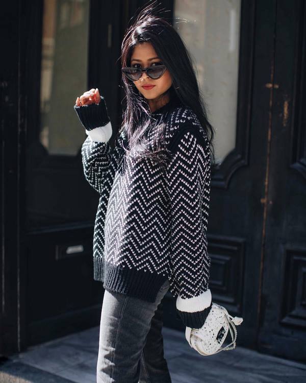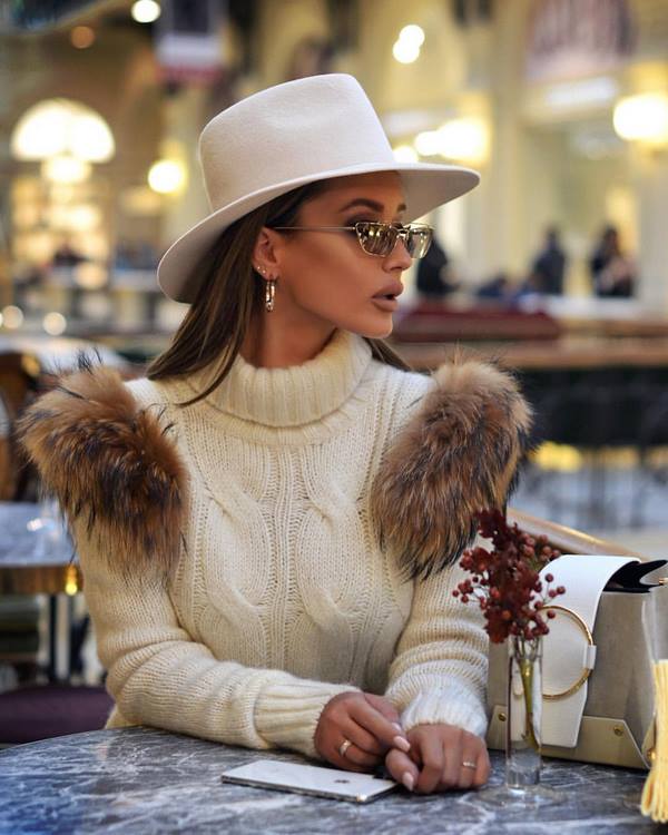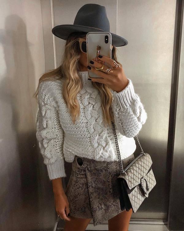 Sekiranya anda ingin mendapatkan gambar asal dengan baju rajutan, pilihlah model dengan leher bujur, cetakan pemangsa atau abstrak, corak rajutan yang cantik dan slot untuk imej yang lebih berkesan dengan pakaian rajutan.