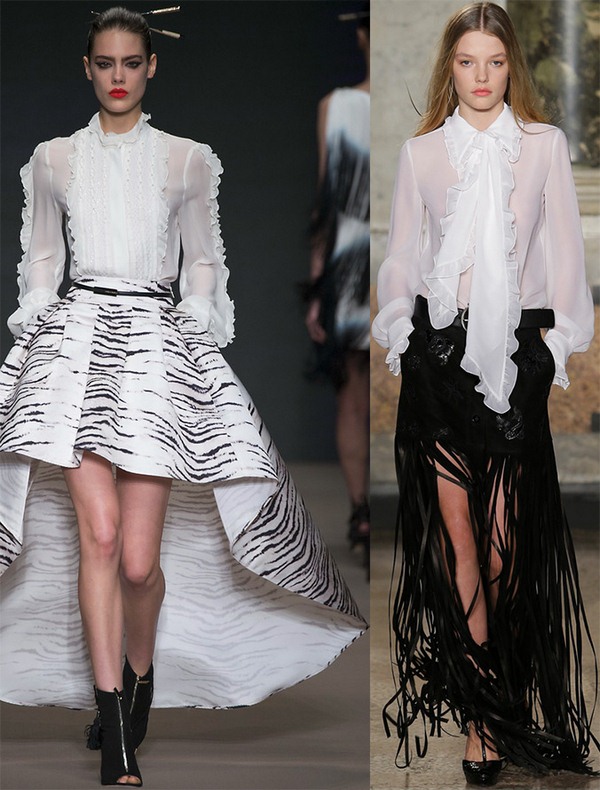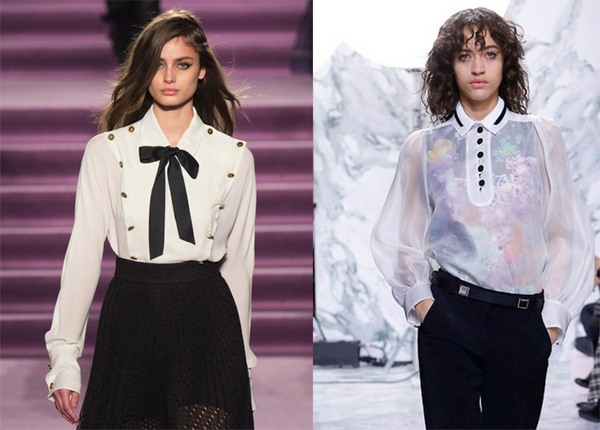 Trend ini akan menjadi blaus bergaya yang diperbuat daripada kain lut atau bahkan telus sepenuhnya, sangat ringan dan nampaknya lapang, yang dibentangkan dalam koleksi banyak pereka terkenal.