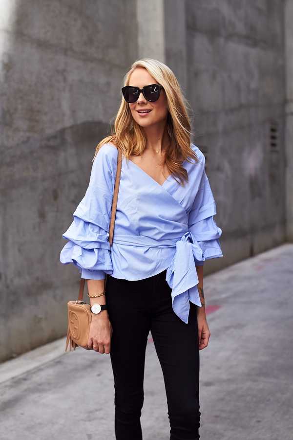 Dengan bantuan blaus dengan lengan lengan, anda boleh melakukan imej unik dan menarik 2025-2026, tepu dengan romantik dan kewanitaan.
