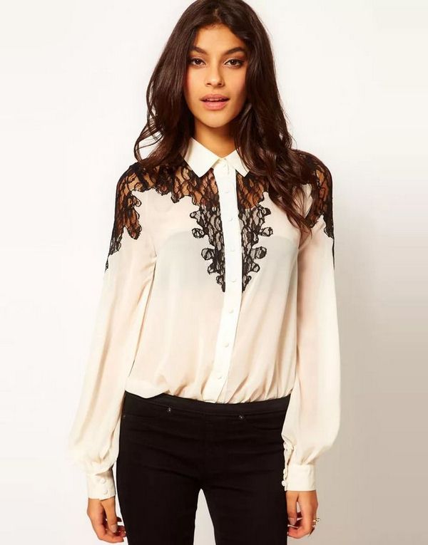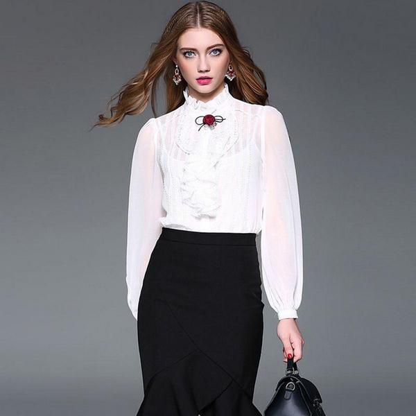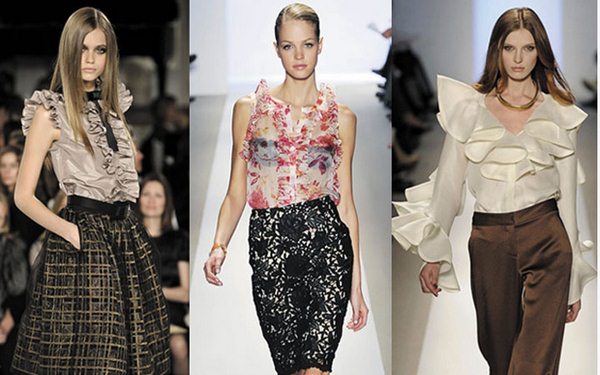 Pilihan blaus bergaya musim ini boleh dihiasi dengan elegan dengan ruffles, frills, frills, pelbagai sisipan, kain renda, busur.