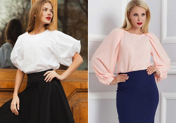 Penampilan terbaik dengan blaus bergaya dengan lengan lengan dan pilihan blaus lain dengan lengan asli boleh didapati dalam pilihan kami tepat di bawah dalam ulasan.