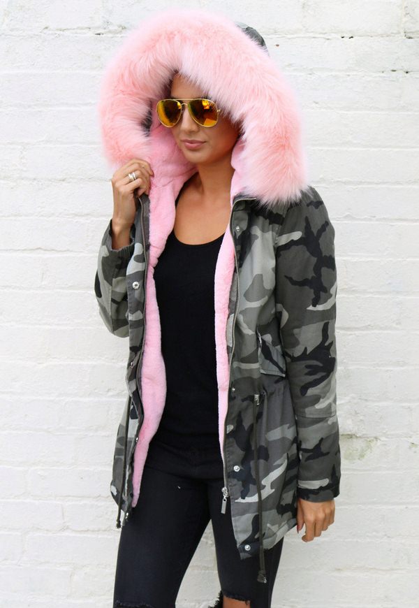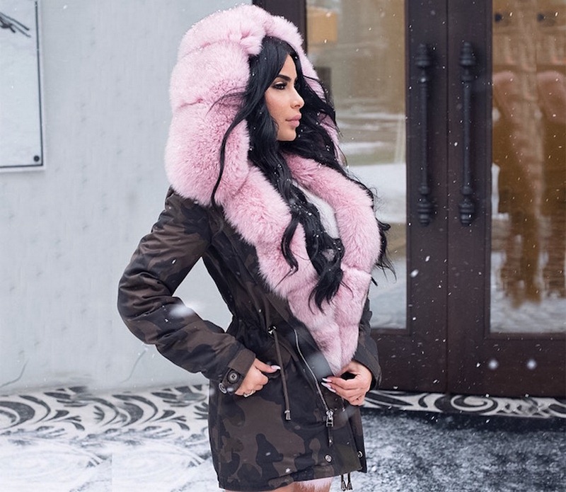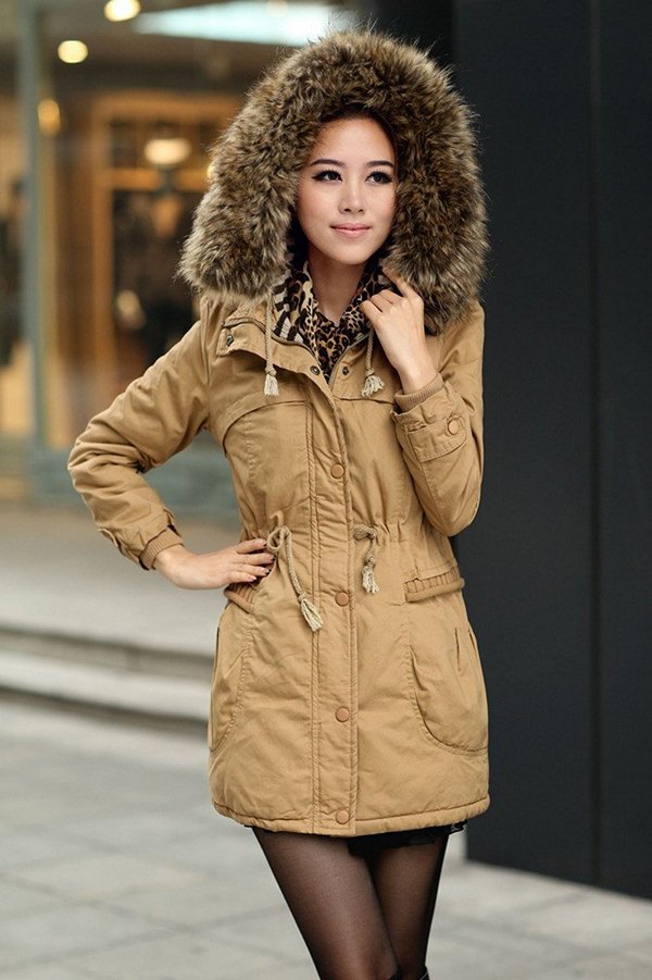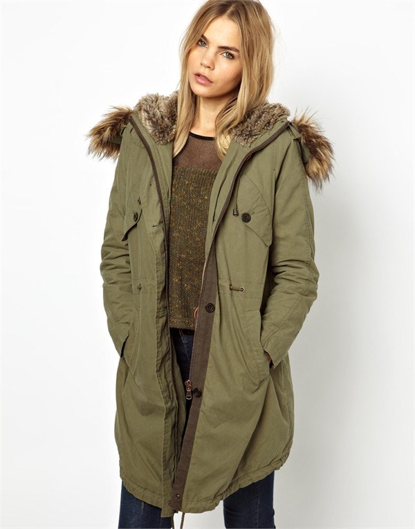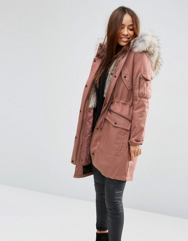 Jaket parka cantik dengan bulu boleh didapati di burgundy, navy, beige dan biru yang disenyapkan, yang memberikan kemewahan dan kecanggihan khusus untuk jaket parka.
