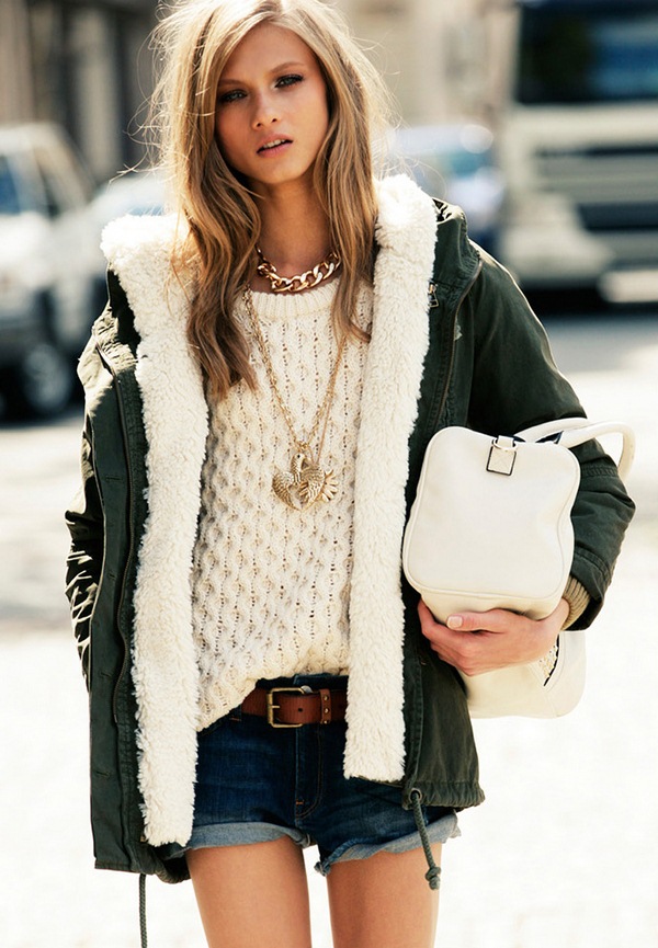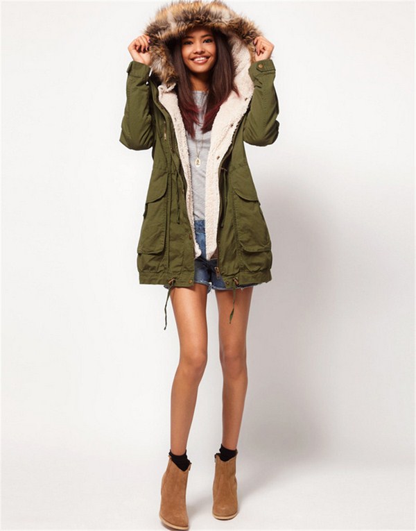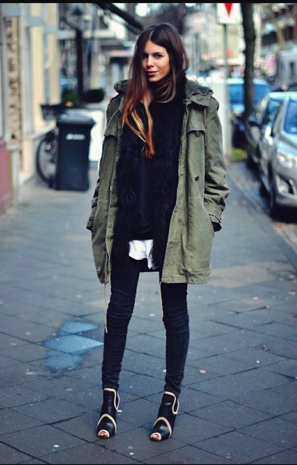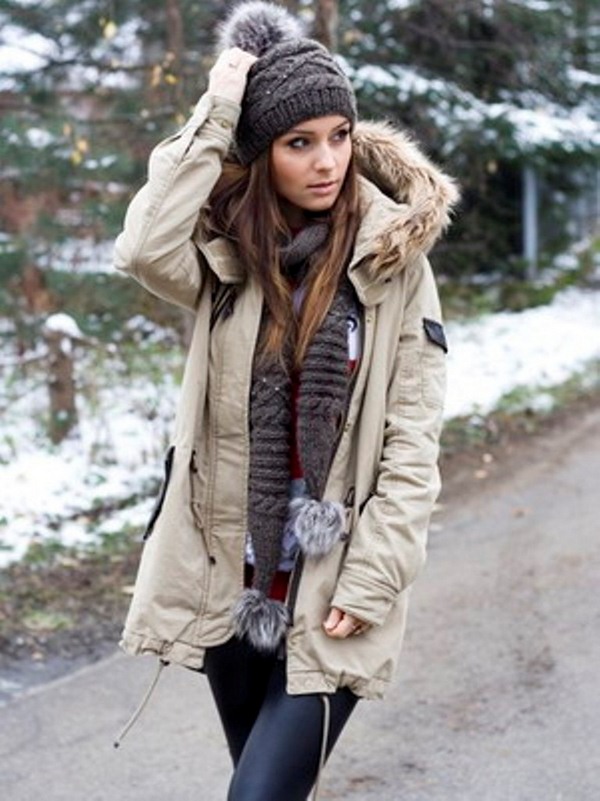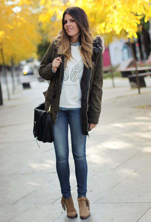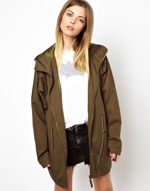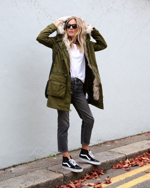 Walaupun jaket parka lebih bergaya sukan, stylists mencadangkan bahawa kami menggabungkan mereka dengan skirt dan pakaian, seluar jeans, kasut rendah dalam gaya lelaki, serta kasut bertumit tinggi.