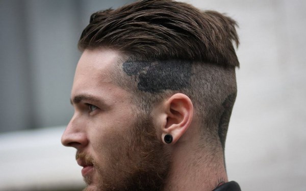 Potongan rambut lelaki yang tebal dan tebal diwakili oleh potongan rambut bawah, di mana terdapat kunci panjang di atas dan sangat pendek di bahagian belakang kepala, serta bahagian temporal dicukur dan berpisah di sisi.