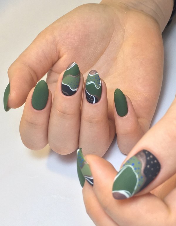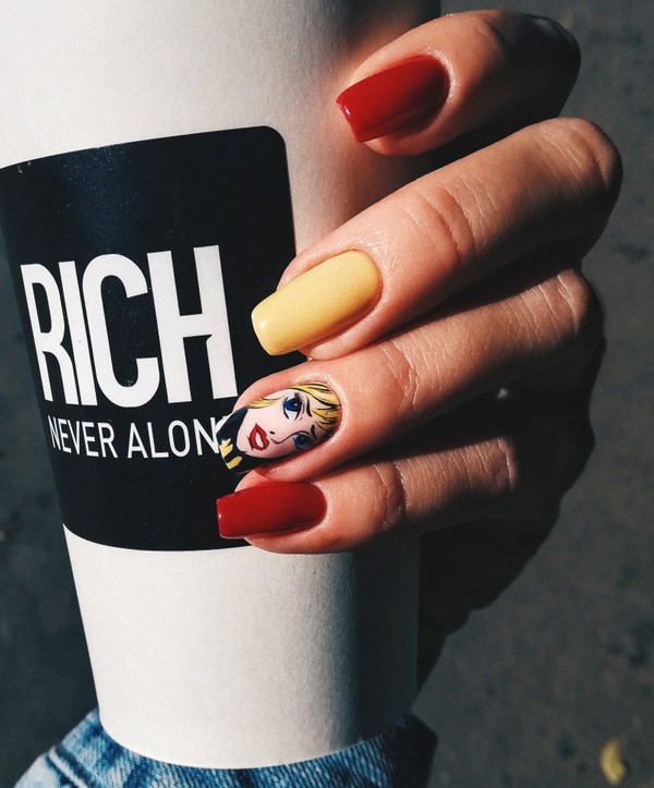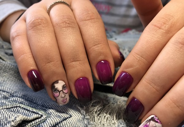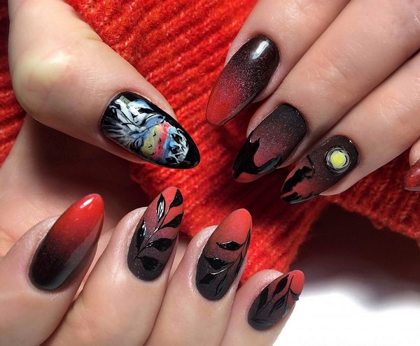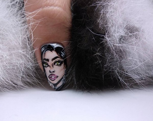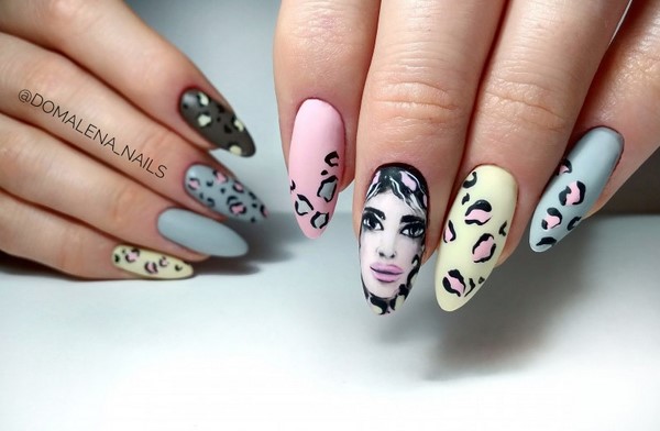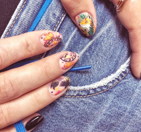 Trend di kalangan cetakan pada kuku bergaya akan menjadi corak pemangsa, motif abstrak, potret dan wajah gadis, reka bentuk bunga dan lukisan bunga, haiwan dan geometri.