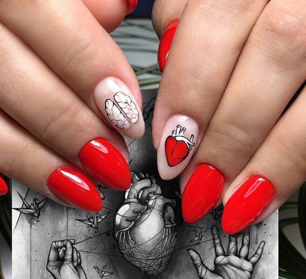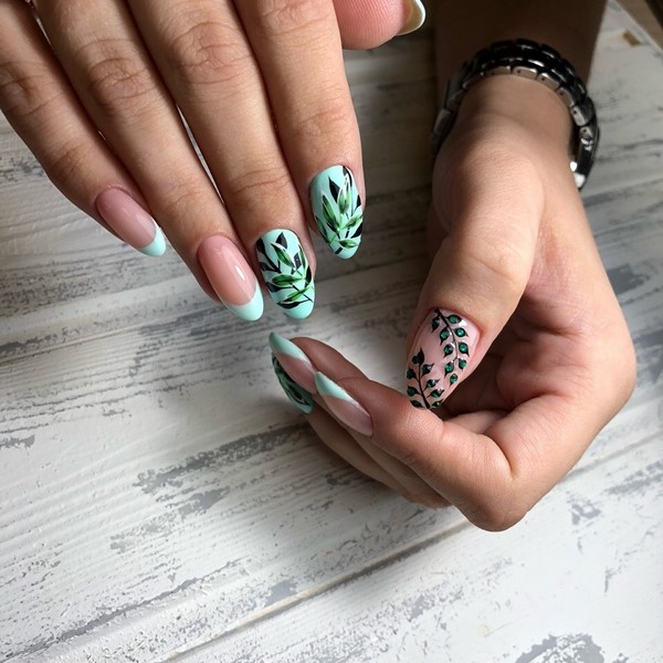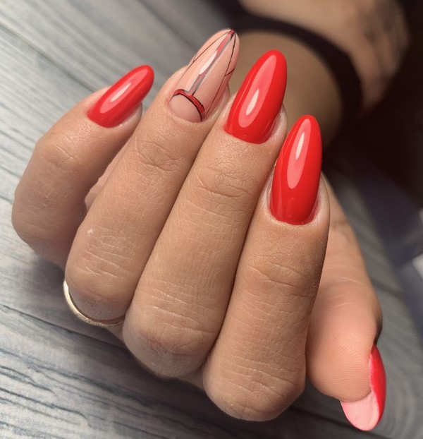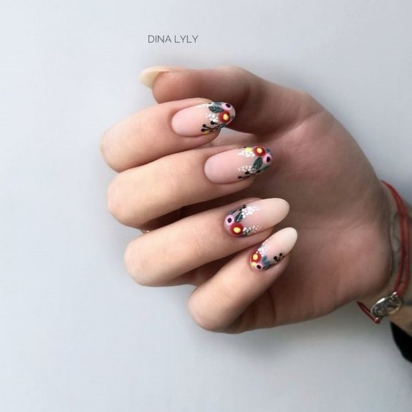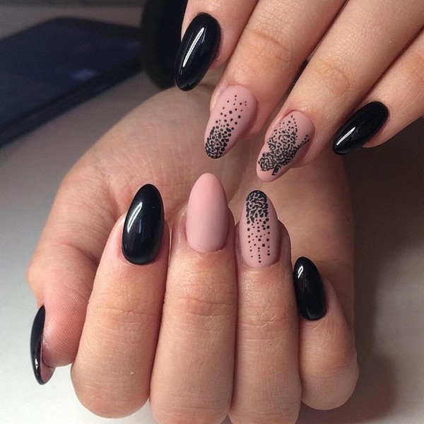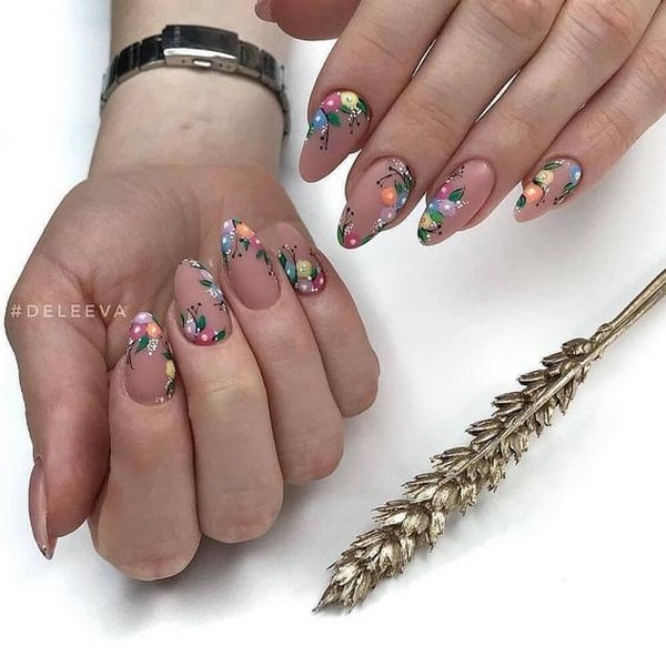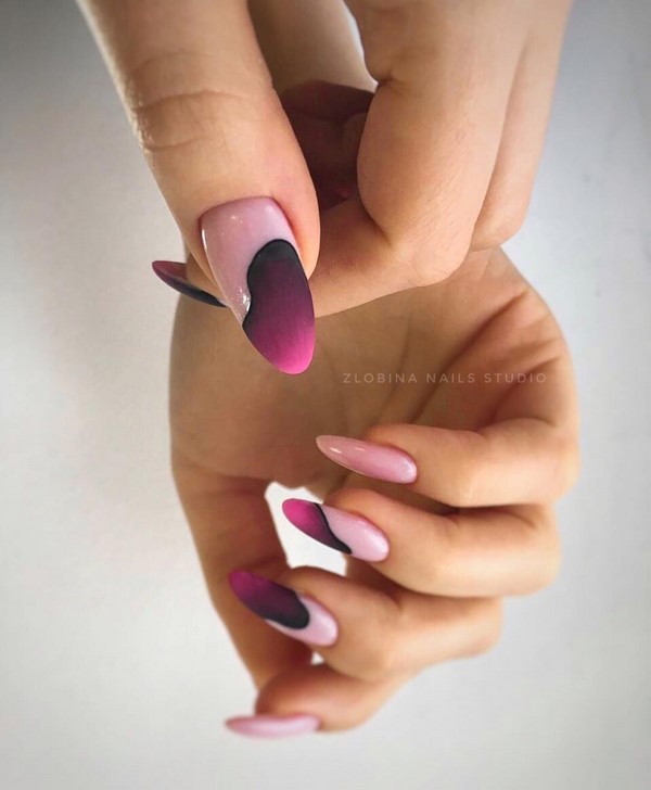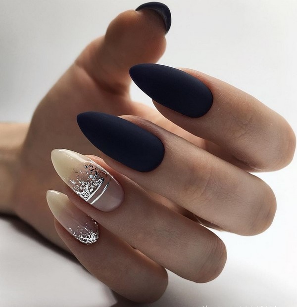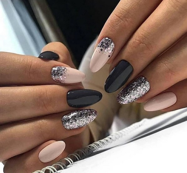 Mengikut bentuk plat, reka bentuk yang bergaya dapat membezakan almond yang bergaya, almond lembut, bujur, yang paling banyak diwakili dalam karya pakar kuku atas.