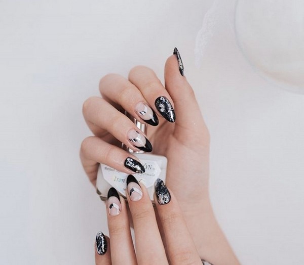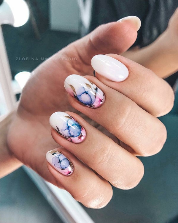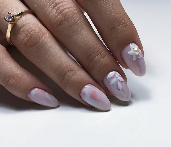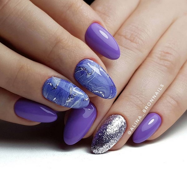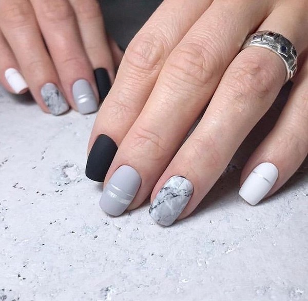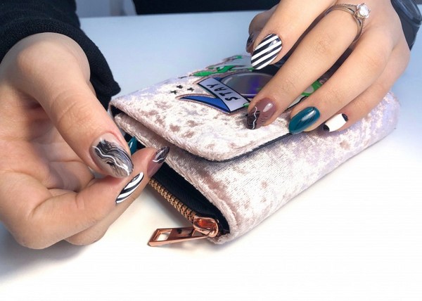 Kelonggaran manicure marmar yang bergaya menjadikannya mudah untuk disesuaikan dengan imej untuk pejabat, serta set percutian. Kuku bergaya panjang yang berbeza kelihatan hebat dalam reka bentuk kuku yang digabungkan dengan cetakan marmer, perhiasan dan kerajang, serta warna yang berbeza dari gel menggilap. Kuku marmar yang menawan kelihatan serba boleh dan begitu mudah.
