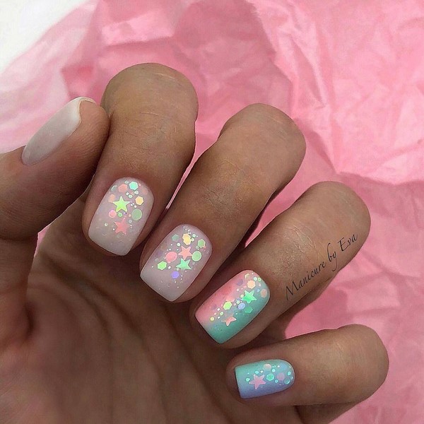 Pesona reka bentuk kuku bergaya musim ini bukan sahaja terdiri daripada warna dan kesannya, tetapi juga dalam kecanggihannya, yang akan tercermin dalam kuku bergaya dengan telanjang, pastel atau bersalut daging. Untuk membuat kuku bergaya dalam warna-warna ringan dan halus lebih halus oleh kekuatan dekorasi dengan menggosok, kemifubuki halus, foil, serta reka bentuk yang canggih.