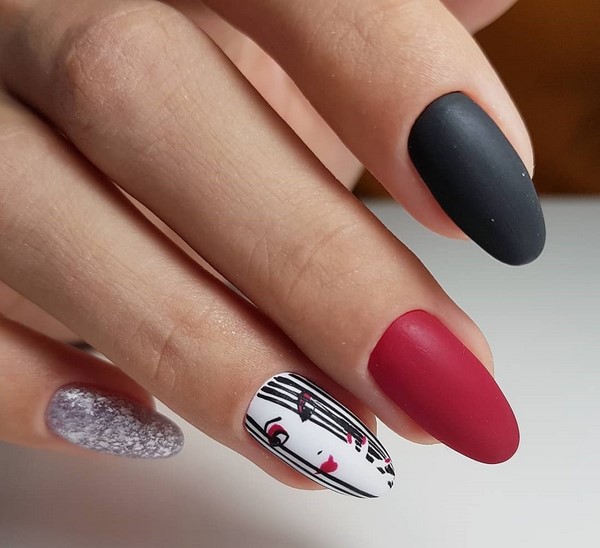 Kuku bergaya kreatif musim ini dibentangkan bersama teknik teknik manikur Perancis dan bulan. Top matte, serta bentuk menarik untuk menyerlahkan bulan dan senyuman, akan memberi kesan kepada gabungan gabungan kuku manicure. Kuku bergaya dengan lunar dan tuan pereka Perancis menawarkan untuk melaksanakan dengan menggunakan warna gel warna yang berbeza, dengan jenis lubang dan senyuman bunga, "ruang negatif" dan jalur.