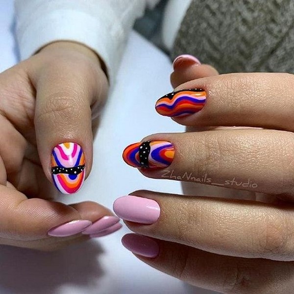 Menghairankan kerana ia mungkin kelihatan, salah satu keputusan paling berani dari reka bentuk bergaya marigolds 2025-2026 akan menjadi abstrak. Kuku "abstraksi" yang bergaya kelihatan unik dan tidak dapat dibezakan, kerana hampir tidak mungkin untuk mencipta seni paku yang sama, yang menjamin anda yang tidak dapat tahan terhadap manicure seperti bergaya dengan kuku dalam gaya "abstraksi". Terdapat banyak pilihan untuk membuat kuku bergaya dalam teknik ini - dari laconic dan halus untuk reka bentuk seni kuku yang berwarna-warni cerah.
